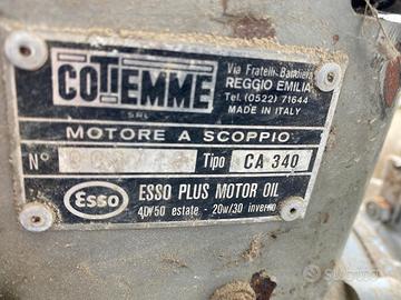Vendo falciatrice Casorzo a benzina con barra falciante, motore Colemme tipo CA 340. La macchina è completa e come da foto, ma è ferma da alcuni anni e viene venduta da revisionare / da rimettere in moto. Ideale per chi sa mettere mano a motori agricoli d’epoca oppure per ricambi. Condizioni estetiche discrete, con normali segni di utilizzo e un po’ di ruggine dovuta al tempo. La barra falciante è presente e completa. Ritiro a mano. Per ulteriori informazioni o foto contattatemi al numero di telefono: 3383933194