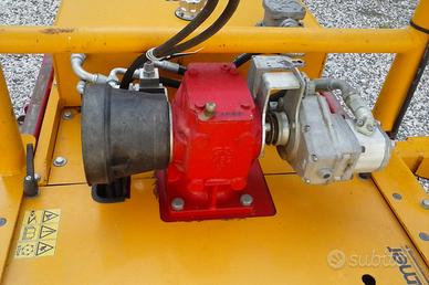 Falciatrice per tagliare erba su vigneti e frutteti ILMER, modello EMG 215 KS, del 2014. Larghezza di lavoro: da 210 cm fino a 260 cm grazie allo spostamento laterale e all'apertura della ruota interfilare. Ruota interfilare dotata di tastatore idraulico con circuito autonomo, necessita di un trattore con almeno 30 cavalli, 4 lame a doppia faccia, possibilità di montaggio sia anteriore che posteriore. Compresi: scatola e pompa da 540 giri per montaggio anteriore, albero cardanico a norma, prolunghe per attacchi idraulici. Perfettamente tenuta e funzionante.