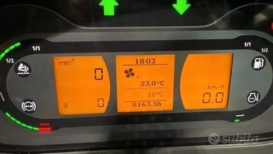 Trattore usato, in ottimo stato, completo di: marce ultraridotte, cabina sospesa, climatizzazione, freni ad aria compressa, assale anteriore sospeso, sollevamento anteriore, trasmissione variazione continua, 4 RM, Velocità massima 50 km/h. Stato pneumatici anteriori: 60% - Stato pneumatici posteriori: 60% Ore lavoro: 8160 PREZZO ESCLUSO DI IVA Contattare il