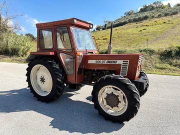 Trattore gommato Fiat 666 dt cv 68 ore 7400 completo di: doppia frizione, sollevatore, distributori idraulici e idroguida. Macchina originale meccanicamente in ordine, visibile solo su appuntamento, per informazioni: