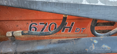 Vendesi Fiat 670 H dt cabinato in ottimo stato e accessoriato con forca quicke 525 completa di forca per balloni, benda, benda per stabbio e paletta per spianare terra.