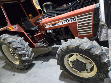 Trattore fiat 70.76 versione DT LP. Macchina dotata di inversore di marcia e 4 prese idrauliche posteriori. Meccanica ottima, non necessita di alcun lavoro. Appena sostituito il tettuccio in vetroresina e il frontalino cofano(spesi oltre 1000€ di pezzi). Impianto luci a LED con fari anteriori e posteriori, gomme misure 420.70.28 e 300.70.20 al 60%. Pronto a lavorare, disponibile a qualunque prova. Motore perfetto, tagliando eseguito da poco. Disponibile una cabina artigianale(compresa nel prezzo) e set zavorre anteriori da 6pezzi(a parte). Per info chiamate al 3270675993(Giovanni)