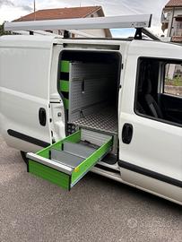 FIAT Doblo Cargo CH1 S&S Business 1.6Mjt Allestimento Professionale Officina Mobile 77Kw 105Cv 6Marce, immatricolazione 16.10.2020, portapacchi tetto, Euro 6D-Temp-Evap-Isc, CO2 144 g_km, colore bianco pastello con protettori laterali / paraurti / calotte specchi / maniglie porte nero opaco, fendinebbia, 4 porte una laterale scorrevole, autoveicolo tipo furgonato autocarro (N1) chiuso con 2 posti e interno stoffa combinazione due tonalità di grigio con disegni parte centrale, allestimento con scaffalature professionali officina mobile e sistema elettrico (inverter), sedili con appoggiatesta e quello del conducente con bracciolo a scomparsa, Portata 916kg, Lunghezza 4,406M – Larghezza 1,832M, rapporto potenza/tara = 49,391Kw/T, chiusura centralizzata chiave telecomando, impianto multimedia / Radio / Media / Navigatore / Phone / Apps con schermo touchscreen e comandi volante, porta Usb, Bluetooth comandi volante e vocali, control cruise comando struttura volante, comando Start&Stop, Asr, Esp, ABS, airbag, sidebag, vetri comandi elettrici, fanali anteriori regolabili, servosterzo, Pc bordo, climatizzatore, sensori di parcheggio posteriori, sistema di controllo pressione pneumatici, vano carico con chiusure antitaccheggio, 79.369Km tagliandato.
