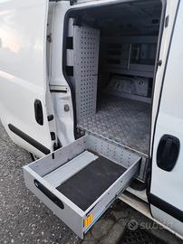 Posteriore completamente attrezzato in alluminio con scaffalature e cassetti laterali più cassettoni estraibili posteriori e laterali.
