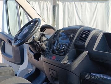 LISTA ACCESSORI : airbag lato guida allestimento scocca: furgone standard alzacristalli elettr. ant. cambio 6 marce chiusura centralizzata con comando a distanza Electronic Stability Program (ESP) regolazione antislittamento trazione (ASR), Sistema assistenza guida: assistenza partenza in salita filtro antiparticolato Fodere sedili/rivestimenti: Tessuto immobilizzatore (elettronico) kit riparazione pneumatici lampeggiatori in retrovisore est. integrato luce guida diurna modanature lat. motore 2,3 Ltr. - 96 kW JTD CAT paratia divisoria vano carico (griglia) post. conducente paratia divisoria vano carico estraibile (senza finestrino) passo 3000 mm piantone sterzo (volante) regolab. porta scorrevole vano carico / abitacolo dx porte a battente senza vetratura Sedili cabina guida: sedile conducente con bracciolo e supporto lombare Sedili cabina guida: sedile conducente regolabile in altezza bracciolo per sedile conducente Sedili cabina guida: sedile passeggero 2 posti sensore acqua filtro carburante sensore livello olio servofreno sfiato basamento riscaldato sistema anti-inquinamento normativa Euro 6 sistema antibloccaggio (ABS) tipo trazione: trazione ant. vetratura leggermente colorato Allestimento speciale aiuto parcheggio elettronico climatizzatore comandi radio su volante fendinebbia paratia divisoria vano carico porta USB portadocumenti (Smartphone / Tablet) ripiano in padiglione cabina guida ruota di scorta completo (incl. ancoraggio ruota di scorta) Sistema audio: UConnect con Bluetooth antenna (antenna) in retrovisore est. integrato vano portaoggetti plancia cruscotto (con serratura) ABS, Air Bag, Servosterzo, Tetto Rialzato,