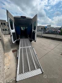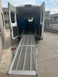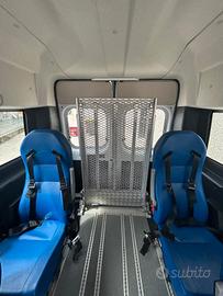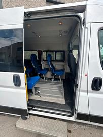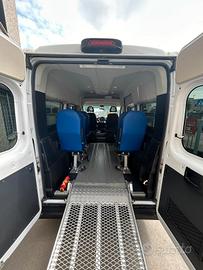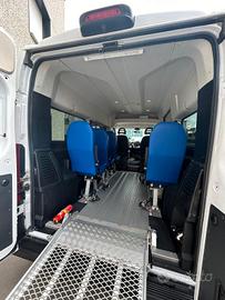 Fiat Ducato tetto alto, 2.3 cc, 110kw, anno 2019, Euro 6, 119.000 km.Pulmino 9 posti omologato a libretto come veicolo trasporto disabili con la seguente configurazione attuale: 2 posti in cabina e 5 sedili posteriori. Possibilità di eliminare sino a 6 sedili per sostituirli con massimo 5 carrozzine. Dotato di rampa MANUALE posteriore marca FEAL e di dispositivi di ancoraggio. Full optional clima stereo, retro camera e condizioni generali molto buone pari al nuovo come da foto.Prezzo €32.000,00 più IVA (al 4% per aventi diritto) più passaggio di proprietà (ridotto per aventi diritto). Ottima alternativa a veicolo trasporto disabili con pianale ribassato, Peugeot Partner, Citroen Berlingo, Opel Combo, Mercedes Citan, Fiat Scudo, Fiat Ducato.