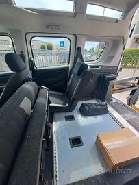 Fiat Doblò Tetto alto, 1.6cc, 88kw, Euro 6, Diesel, immatricolazione 05/2018, 143.000 km circa, cambio manuale. Dotato di allestimento omologato per trasporto disabili con tetto alto e sollevatore posteriore elettro-idraulico doppio braccio marca Braun.