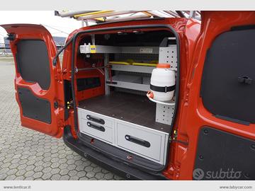 Veicolo allestito con portapacchi portascalae cassettiere interne.