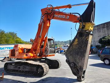 Escavatore cingolato Fiat-Hitachi FH220T in versione demolizione industriale, anno 2002, ore di lavoro 9.308, peso operativo senza cesoia Kg 26.200 peso operativo con cesoia Kg 29.950, motore Fiat 8365T 114 kW, completo di cesoia da demolizione industriale LGR HSS400 anno 2006, rotazione a 360°, macchina completamente ricondizionata pronta al lavoro.