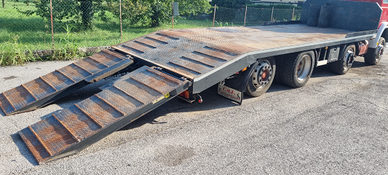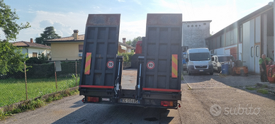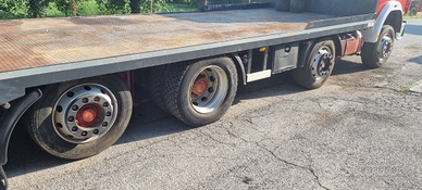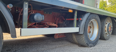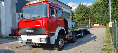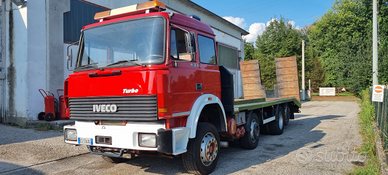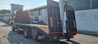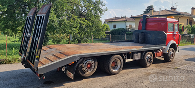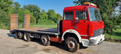 Vendo Fiat Iveco 320.36 4 assi 8x2 carrellone con rampe idrauliche.Anno 1993.Cambio manuale ZF.Massa complessiva a pieno carico 32.000 kg.Portata kg. 20.500.Km. 133.000.Pneumatici 315/60.Primo asse balestrato - secondo, terzo e quarto asse sospensioni pneumatiche.Passo mm 5.060.Altezza pianale di carico da terra cm 98.Lunghezza totale pianale di carico cm 740 (620 cm piano diritto + 120 cm piano inclinato) e larghezza cm 255.Rampe singole idrauliche lunghezza cm 210.Prezzo netto i.e..Per info339 1952234339 5814237