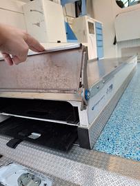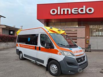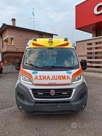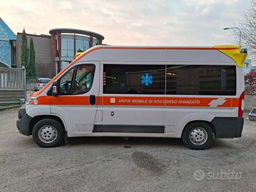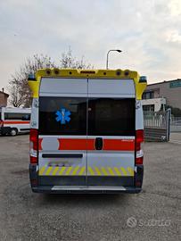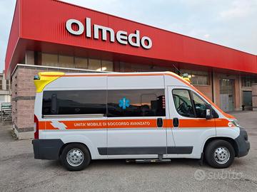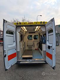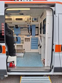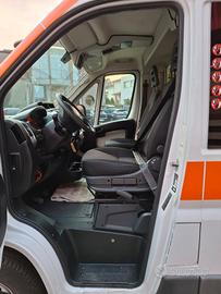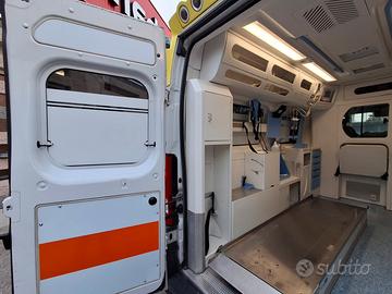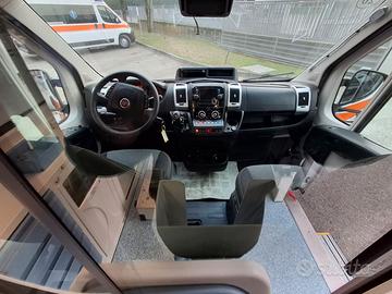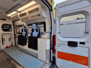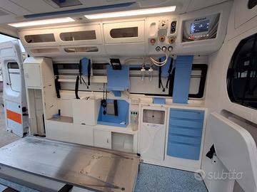 DESCRIZIONE ALLESTIMENTO INTERNO: Vano sanitario composto da tunnel a tetto con aeratore per immissione ed emissione aria, climatizzatore automatico canalizzato a tetto, mancorrente e luci spot a LED; paratia tra cabina di guida e vano passeggeri dotata di finestrella apribile manualmente. Sedile testa barella con seduta richiudibile, poggiaschiena e cintura pretensionata. Alloggiamento per sedia portantina in paratia lato destro. Vano sopra alla cabina di guida per contenimento materiale. Interni in policarbonato lavabili e igienizzabili. Pavimento idoneo al lavaggio con acqua corrente. Predisposizione lato barella per il contenimento di dotazioni sanitarie ed elettromedicali, cassettiera in policarbonato a 5 cassetti. Sedili lato destro richiudibile e dotato di poggiaschiena e cintura pretensionata. N.4 prese da 12v, N.4 prese da 220V e 1 presa per termoculla.
