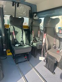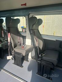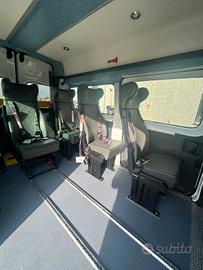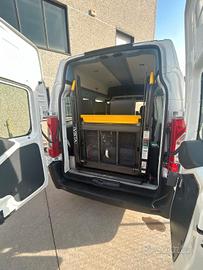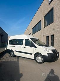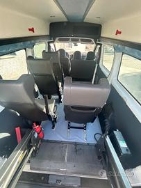 Fiat Scudo Tetto Alto, immatricolazione 12/2013, 2.0cc, 94kw, Diesel, con soli 89.000 km, Euro 5B, colore bianco. Pulmino 9 posti omologato a libretto per trasporto disabili con la seguente configurazione interna: 3 posti in cabina + 4 sedili posteriori a sgancio rapido. Dotato di sollevatore elettro idraulico doppio braccio Braun e possibilità di caricare fino a 2 carrozzine.