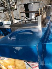 food truck con 2 friggitrici, frigo e congelatore, lavandino, piano di lavoro tutto a norma facile per trasporto. tetto chiudibile