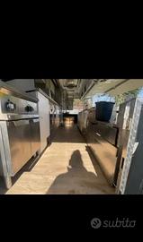 La cucina del food truck è completamente nuova e realizzata nel pieno rispetto delle normative vigenti e degli standard HACCP. Tutte le attrezzature sono perfettamente funzionanti, inclusi frigoriferi, frigo-bancone e congelatore. ha degli scaffali.