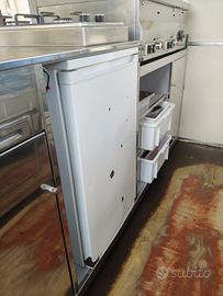 Design Ottimizzato: Doppio bancone in acciaio inox (conforme HACCP) con ampi spazi interni per il personale.