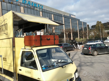 Piaggio Porter 1300 DOHC 16v , motore nuovo appena rifatto, allestimento food truck vintage, vetrina frigo, frigo interno a 2 sportelli, piastra a gas 3 cannelli, lavandino con caldaia, generatore elettrico di tipo nautico 3 kw, baule esterno di stoccaggio, ampio spazio interno per stoccaggio merci, bombola a gas con impianto a norma, tutto perfettamente funzionante ed autonomo, pronto per essere messo su strada e iniziare immediatamente attività commerciale. Vendesi per cessata attività.