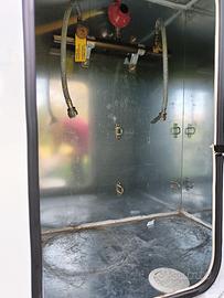 Mobile vano verticale per deposito oggetti (pulizie, altro..). Pavimento antiscivolo. Presenti anche due tavoli e quattro sedie. Vano gas con accesso da esterno che contiene 2 bombole da 11 kg. Impianto elettrico 220 da 2,5 kw. Presa interbloccata esterna per generatore elettrico.