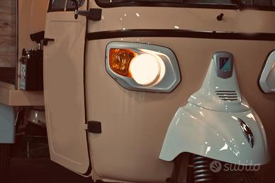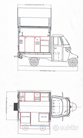 VENDITA FOOD TRUCK- APE PIAGGIO CON MOTORE DIESEL 400 CC - CIRCOLANTE. ATTREZZATURA NUOVA DI FABBRICA COLORE BIANCO CON COPERTURA SOLLEVABILE E PORTA POSTERIORE DI ACCESSO. PAVIMENTO RIVESTITO IN PVC, PEDANINA SALITA POSTERIORE, N.2 GAMBE CRICK STABILIZZATRICI COLLAUDO USO SPECIALE - MANUALE NORME CE - BANCO PER ELEMENTI DI COTTURA SCORREVOLE MANUALE E PROTEZIONI FRONTALI IN CRISTALLO. CAPPA ASPIRANTE FUNZIONAMENTO A 230V CELLA FRIGO DA lt. 115 DA INCASSO CON ALIMENTAZIONE A 220V, ANTA CIECA. BASE RETROBANCO REALIZZATA IN LEGNO MULTISTRATO PLACCATO IN LAMINATO PLASTICO,PIANO DI LAVORO IN ACCIAIO INOX GRUPPO IDRICO CON LAVELLO INOX POSIZIONATO SUL PIANO DELLA BASE, CON POMPA ACQUA COMANDO A PULSANTE, BOILER ELETTRICO PER LA PRODUZIONE DI ACQUA CALDA, n. 2 NSERBATOI. IMPIANTO ELETTRICO A 230V A NORME CE CON SALVAVITA E PRESA PER ALLACCIAMENTO MANTENITORE DI CARICA, COLLEGATO CON LA BATTERIA ORIGINALE DEL VEICOLO.