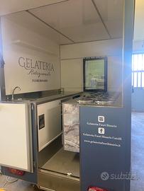 Vetrina Gelati professionale a pozzetti 12 gusti. Frigorifero per stoccaggio materie prime. Lavello Idrico con boiler per acqua calda, conforme ASL. Sistema Elettrico potenziato, omologato e certificato. Spazio Lavoro Ottimizzato: Piani di lavoro in acciaio inox. Con molto dispiacere lo vendiamo per problemi di salute. Prezzo + iva
