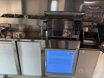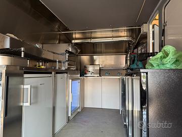 Truk food con 4 vetrine frigo Frigo Congelatore Piastra pietra lavica Frigitrice gas Forno pizze Kappa aspirazione Compreso impianti a norma e gpl E generatore corrente 3kw