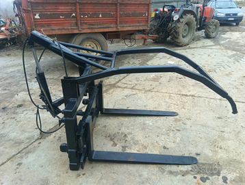 Forca per caricatore frontale con trattenitore per tronchi di legna o ramaglie,con doppio pistone per avere un apertura maggiore,molto robusta