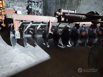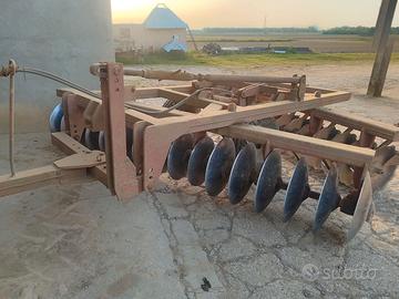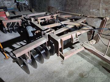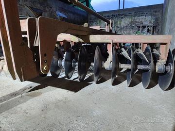 Frangizolle trainato larghezza 4 metri corpo unico, meccanismo di sollevamento su ruote idraulico, 14 dischi lisci e 14 dischi sagomati. Produzione originale Macoratti.