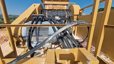 Impianto mobile su slittoni di frantumazione secondaria, marca Continental Nord, anno di costruzione 2022, condizioni pari al nuovo, dimensioni di trasporto lunghezza 7.8m - altezza 3.6m, bocca 1000x300. Tramoggia di carico 4 m³, alimentatore grizzly, pezzatura in uscita da 0/25mm a 0/60mm, produzione mc/h 10/32.