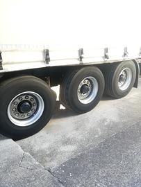 Centina alla francese, laterali scorrevoli, alzabbassa, tetto copriscopri, sponda posteriore caricatrice retrattile da 15 q.li Campisa, primo asse sollevabile, terzo asse fisso.