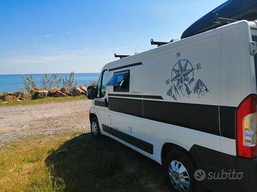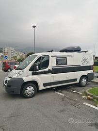 Peugeot Boxer 2.2 Td anno 2009 revisionato tagliandato freni nuovi gomme 4 stagioni 80% pannello solare batteria ausiliaria Webasto originale coibentazione interna pavimento legno fornello e lavandino nautico pompa acqua serbatoio 100 lt scarico sotto lavello 50 lt finestre Carbest oblo tetto tendino laterale fiamma