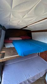 Vendo furgone Iveco Daily passo lungo anno 2009 in perfette condizioni. Il furgone ha 321'000 km totali ed è stato camperizzato e coibentato completamente al suo interno. Il furgone è dotato inoltre di sospensioni ad aria che si regolano automaticamente in base al peso di carico. Le gomme sono state cambiate poco tempo fa e sono in perfette condizioni. Al suo interno ci sono due letti matrimoniali ( entrambi richiudibili )dove possono dormire tranquillamente 4 persone, uno sopra più grande ( dove volendo è possibile dormire in 3 ) e uno sotto leggermente più piccolo richiudibile che diventa divano con al suo fianco un piccolo tavolino richiudibile che può essere molto utile per mangiare. Ci sono inoltre una cucina con zona cottura e lavandino, frigorifero, scaffale per mettere pentole , alimenti o altro, prese elettriche e lampade al Led. Il furgone è diviso in due e nella parte dietro abbiamo un'ampia zona garage utilizzata fino ad ora al trasporto moto ma che può essere usato per qualsiasi evenienza. Nel prezzo è compresa una tenda completa esterna 6x6 ( allegata in foto ) dotata di pali montaggio e telo superiore.