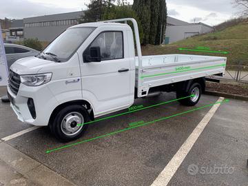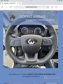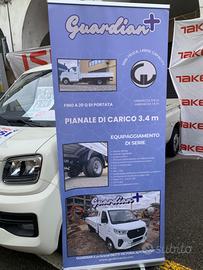 Nuovissimo autocarro veicolo Giotti Guardian Plus, gemellato al posteriore con telaio da camion a longheroni, 1600 cc., 116 CV., 4 cilindri in linea, alimentazione a benzina euro 6e, cambio manuale a 5 rapporti, completo di aria condizionata, servosterzo, vetri elettrici, cruise control, doppio airbag, chiusura centralizzata, retrocamera con avvisatore acustico, EPS, ABS+EBD, fendinebbia e retronebbia, autoradio Dab e Bluetooth, presa 12v, porta usb. Allestito pick-up cassone fisso, misure del pianale 3400x1800 mm., sponde in ferro, lunghezza totale del veicolo metri 5,555 Portata utile di ben 1960 Kg. Veicolo in pronta consegna pronto da immatricolare, per info e prezzi contattare telefonicamente. Disponibilità anche di veicoli allestiti con ribaltabile trilaterale Cucini. Per info e prezzi contatto telefonico. Grazie