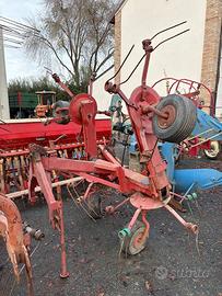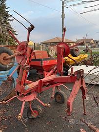 Vendesi girello voltafieno MORRA a 4 giranti, circa 400 cm di lavoro, apertura manuale, una camera d'aria da sostituire, struttura sana senza saldature. Per informazioni Mostra numero