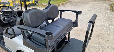 Golf carmarca EZGO mod. VALOR 2+2, cerchi e pneumatici maggiorati di serie,alimentazione a 48v con batterie TROJAN, motore in presa diretta, differenzialea slittamento limitato, portata 4 passeggeri o 2 + pianale per carico conportata complessiva di 227 Kg, sospensioni anteriori indipendenti a molle +ammortizzatore, sospensioni posteriori a balestra + ammortizzatore, motore adinduzione, freno di parcheggio automatico INTELLI-BRAKE, velocità 31 Km/h.