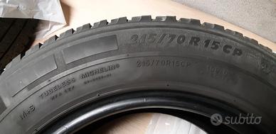 Vendo Gomme Michelin Agilis Camping 215 70 R15 109Q, dot 26 14, le gomme erano montate su un camper sempre rimessato al coperto, hanno percorso quasi 50 mila km ma ancora il battistrada ha spessore, non hanno tagli o rigonfiamenti, i fianchi sono perfetti, sono gomme adatte per un furgone che fa poca strada o per fare delle ruote di scorta, vendo anche due a due o singolarmente, ritiro a mano, il prezzo indicato è cadauna.