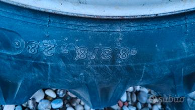 Gomme strette per trattore anteriori 8.3 R 28, posteriori 9.5 R 40. Complete di flangia. (Adatta per trattori new Holland, case).