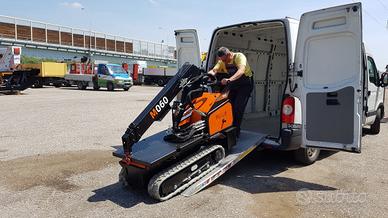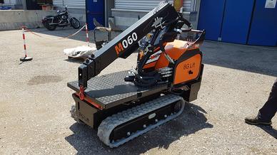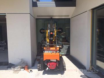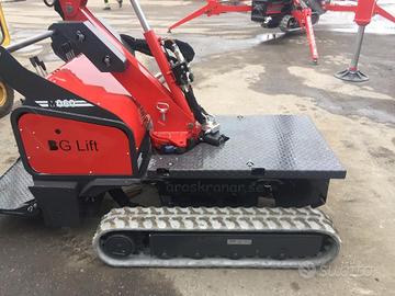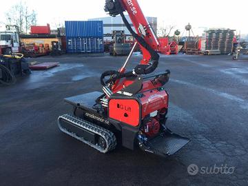 Carro cingolato allargabile, Cingoli in gomma nera, Motoriduttori epicicloidali con freno negativo, Motore benzina Honda, Rotazione con ralla limitata a 50°, Braccio telescopico con n°2 sfili idraulici, Circuito idraulico pompa idraulica e distributori a comando manuale a leva Verniciatura bracci e carro di colore nero, fregi e martinetti arancione