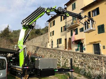 Optionals disponibili: Motore elettrico trifase 15 kw-400V-50 Hz con pompa a portata variabile, Jib 4S articolato con N°4 sfili idraulici completo di comandi e canaline porta tubi, innesto rapido FASTER per collegamento gru-jib, verricello 1900 Kg tiro diretto con carrucole in punta alla gru con comando e controllo di sovraccarico, carrucole per tiro in punta al Jib (Wind And Drive).