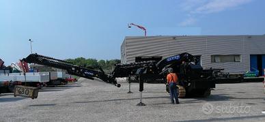 Cestello porta operatore biposto con livellamento a gravità, rotazione manuale, dispositivi di sicurezza Omologazione CE cestello (EN 280) Nr. 2 comandi in punta al jib 4s con elettrovalvole di scambio e avvolgitubo (non compatibili con cestello porta operatore) Supporto speciale sagomato per manipolatore ventosa, portata max 7000 kg. (non adatto per sollevamento con gancio), Supporto speciale sagomato per manipolatore ventosa, portata max 1500 kg (non adatto per sollevamento con gancio) Pattini in acciaio per cingolo ricoperti in gomma vulcanizzata Pattini in acciaio per cingolo ricoperti in gomma vulcanizzata antitraccia, N°4 fari a led (2 anteriori 2 posteriori) sul carro, N°2 fari a led sulla gru, Cassone in acciaio inox spessore 6 mm con coperchio in alluminio Dimensioni 1500 x 400 x 600 mm, Maggiorazione per carro RT: - Cingoli con maglie in acciaio, larghezza pattini 450 mm, motoriduttori di avanzamento con nr. 2 velocità e freno negativo. - Possibilità del credito d'imposta Industria