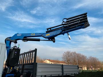 Gru da autocarro vera occasione, DALL'AGLIO NEWCRANES modello 17.0 S4J2 con distributore proporzionale compensato Hawe, radiocomando Scanreco, cestello portapersone omologato PLE e sistema Industria 4.0. Altezza di lavoro 21m.