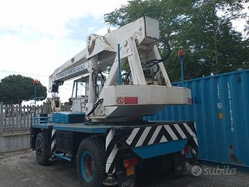 Gru gommata LEONE CELLA BRESCIA, semovente, sollevamento 15 tonnellate, altezza 18 metri, con targa , in buone condizioni di funzionamento, pronta consegna.