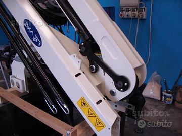 Gru di rientro da Fiere marca Dall'Aglio Newcranes modello 4.0 a 3 sfili idraulici. Capacità di sollevamento 1600 Kg, altezza raggiungibile da terra 12m. Possibilità di installare radiocomando Imet oppure Scanreco e di realizzare cestello omologato anche 2 posti. Prodotto 100% made in Italy con acciaio Svedese weldox 900. Garanzia sulla carpenteria di anni 10. Possibilità di prove su banco di collaudo. Vera occasione!