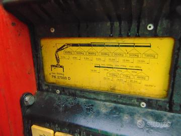 VENDITA SOLO GRU PALFINGER PK27000D + JIB 2 SI + RADIOCOMANDO, ANNO 2000, VERIFICA VENTENNALE FATTA NEL 2024, SEMPRE COLAUDATA REGOLARMENTE, PORTATA MAX QLI. 65, ALTEZZA MAX FINO A 30 MT CON PORTATA 300 KG, VENDUTA A TERRA COMPLETA DI TUTTA LA DOCUMENTAZIONE REGOLARE.