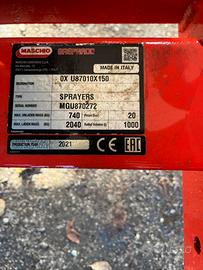 Gruppo diserbo Maschio TEKO 1000, anno 2021, cisterna 1000lt, barra 15mt a 5 sezioni indipendenti con apertura idraulica, altezza barra regolabile idraulicamente, tracciafila con schiuma, lavacisterna, lavacircuito, vasca premix prodotti, apertura sezioni elettriche con comando in cabina, altri svariati accessori.. condizioni pari al nuovo, si vende per mancato utilizzo