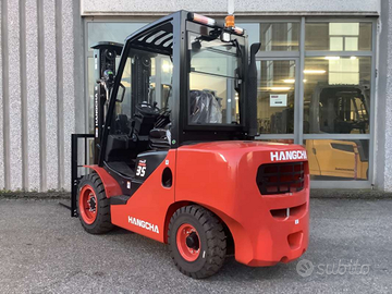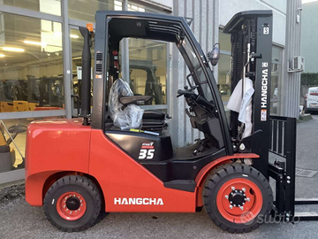 Carrello elevatore nuovo di fabbrica marchia HANGCHA completo di forche 1200 mm., fari lavoro, semi cabina e traslatore. Modello: CPCD35-XH7F Portata: 3500 Kg. Marchio: HANGCHA Montante: triplex con alzata libera Ingombro: 2265 mm. Altezza massima: 4500 mm. Anno di fabbricazione: 2024 Ore di lavoro: 0 h. Gomme superelastiche nuove