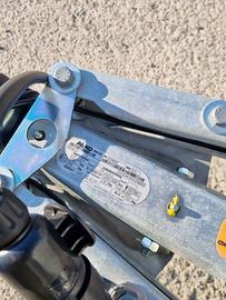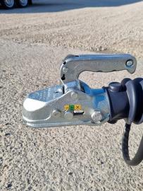 Timone a V con dispositivo di frenata ad inerzia e freno di stazionamento.