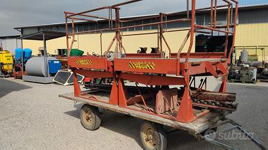 2 Impalcature marca festi apribili, fissate su rimorchietto a 4 ruote, completo eventualmente di portacasse e 2 rulliere lunghe 4 mt