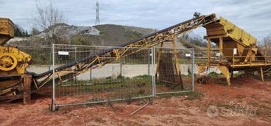 Impianto di frantumazione per inerti composto da: - Frantoio a mascelle magut cr 45 completo di tramoggia (3.20 x 2.45 ); - Nastro di estrazione che trasporta il materiale dall'uscita del frantoio alla bocca del mulino; - Mulino a martelli da 45; - Nastro di estrazione che trasporta il materiale dall'uscita del mulino all'ingresso del vaglio; - Vaglio a 2 piani; - 3 nastri di estrazione del vaglio che dividono le tre pezzature ottenute dalla vagliatura del materiale. PRONTA CONSEGNA TUTTI I MACCHINARI E I MEZZI IN VENDITA DA NOI SONO SITI PRESSO IL NOSTRO DEPOSITO SITO IN VIA DELLA BUFALOTTA 1015 - 00138 ROMA CONTATTACI PER AVERE PIU' INFO BENTIVOGLIO BRUNO SRL BENTIVOGLIO BRUNO + 39/ BENTIVOGLIO GIORGIA +39/