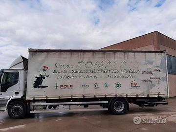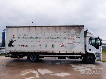 Cat: Iveco Eurocargo due assi, camion usato, autocarro usato, camion con cassone centinato, centina alla francese con sponda caricatrice retrattile