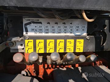 Autocarro 3 assi Iveco 240E38- immatric 12 1996 - portata q.li 128,50- cc 9.600 - kw 276 - cv 375- cassone ribaltabile trilaterale VE.RI. -con sponde in lega h cm 80 - mt 5.45 x 2.55 est- GRU Hiab 122E- 4 DUO