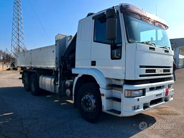 Iveco 240E38- 3assi- ribalt. trilat. + Gru Hiab